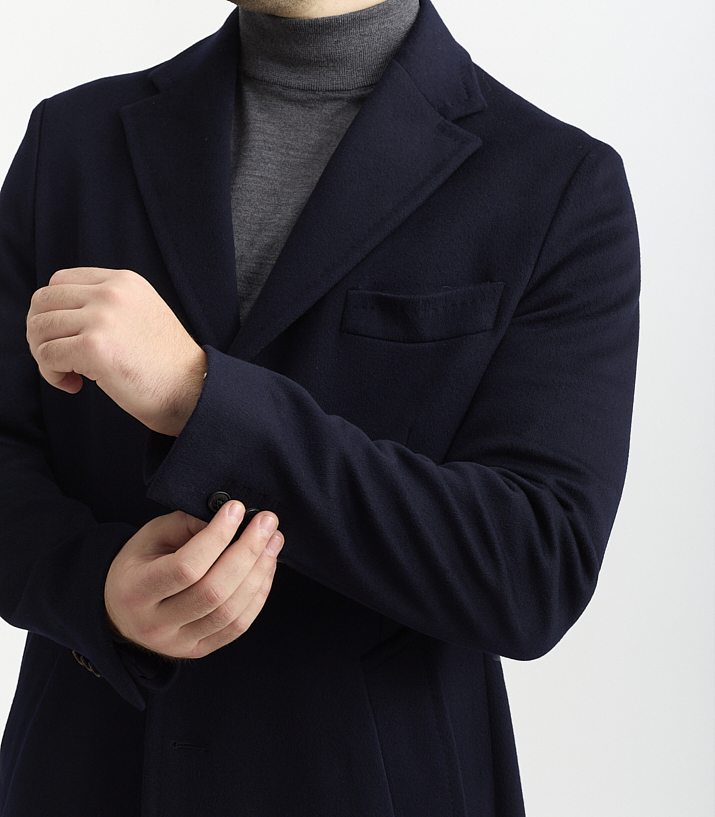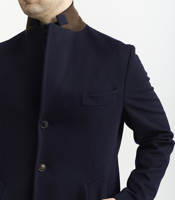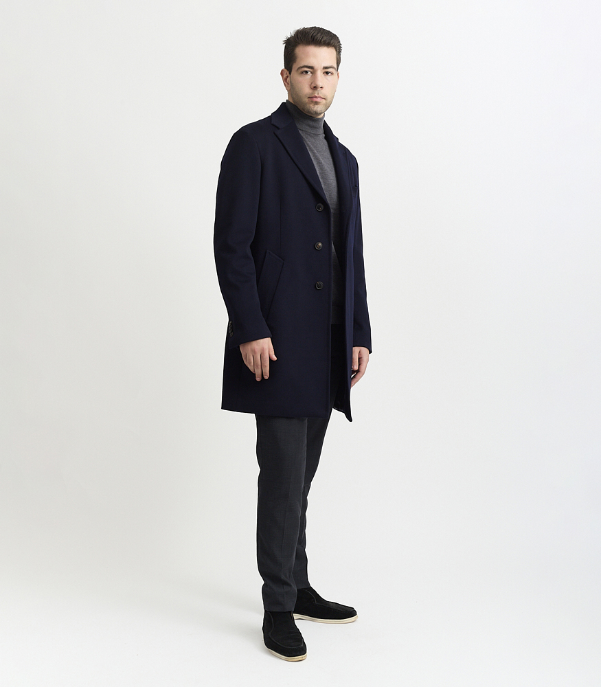 Dieser edle Mantel kombiniert moderne Funktionalität mit klassischer Eleganz. Gefertigt aus einer hochwertigen Wollqualität und veredelt mit dem innovativen Loro Piana Rain System®, bietet er zuverlässigen Schutz vor Wind und Nässe, ohne auf Atmungsaktivität oder luxuriösen Tragekomfort zu verzichten. Die Oberfläche bleibt angenehm weich, während die Struktur des Stoffes ihre natürliche Premium-Anmutung bewahrt. Ein dezenter Wildleder-Akzent am Kragen setzt einen raffinierten, handwerklichen Kontrast und hebt das exklusive Design hervor.