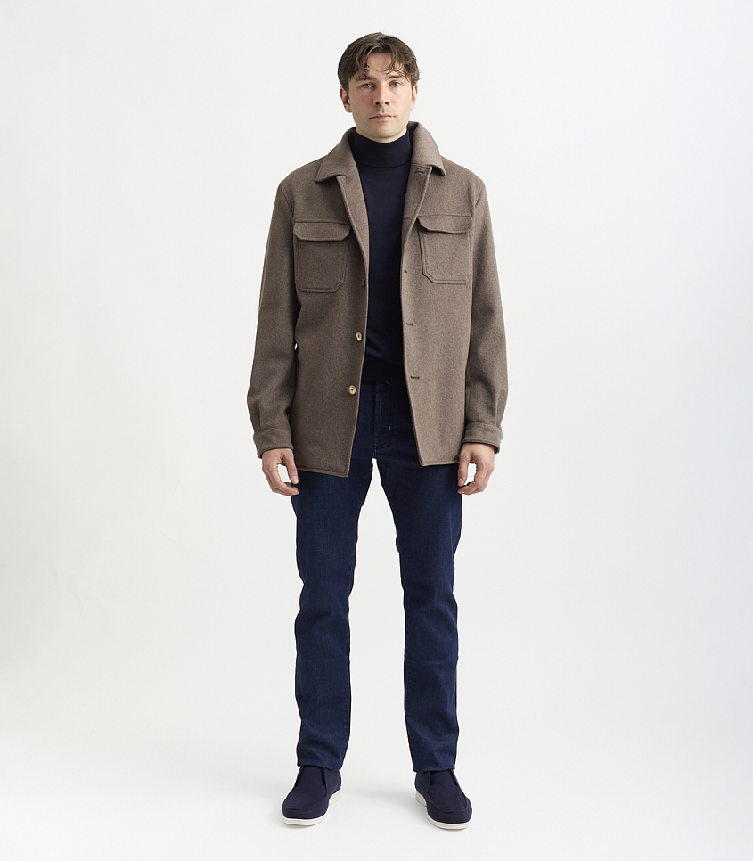 Die Zayn-L von Moorer ist eine luxuriöse Daunenjacke, die meisterhaft italienische Handwerkskunst mit funktionaler Isolation verbindet. Der Oberstoff besteht aus einem edlen Flanell aus 94 % Schurwolle und 6 % Kaschmir – eine Kombination, die Wärme, Weichheit und eine feine Textur bietet.