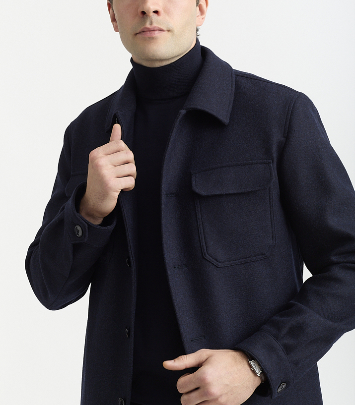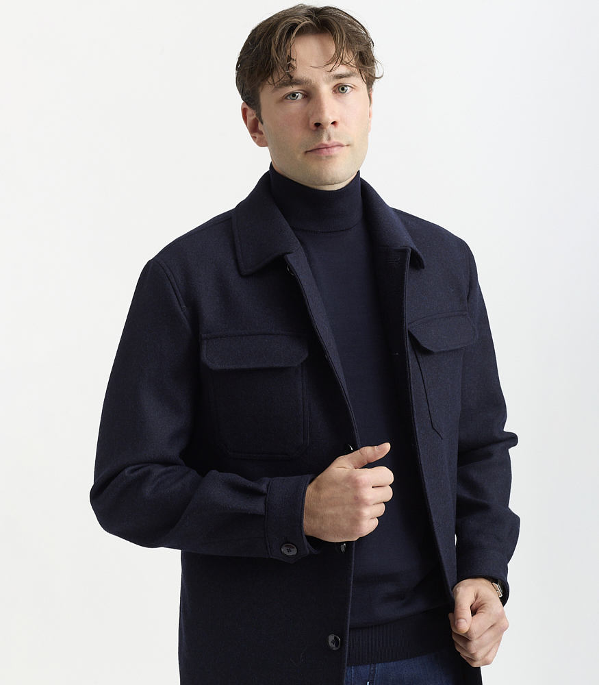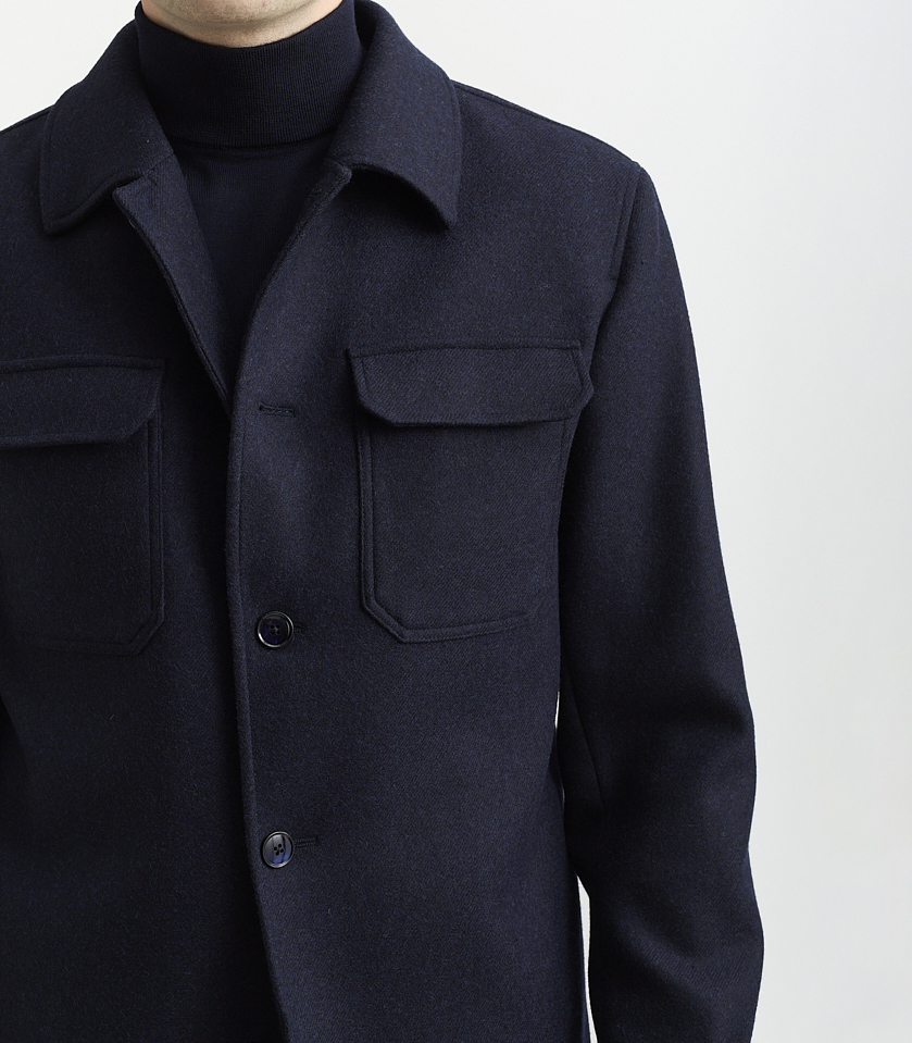 Dieses Overshirt kombiniert die lässige Silhouette eines Hemdes mit der luxuriösen Struktur eines hochwertigen Mantelstoffs. Gefertigt aus einem feinen Woll-Blend, der mit der exklusiven Loro-Piana Rain System®-Technologie ausgerüstet ist, bietet es zuverlässigen Schutz vor Wind und Feuchtigkeit – ganz ohne seine natürliche Atmungsaktivität zu verlieren.