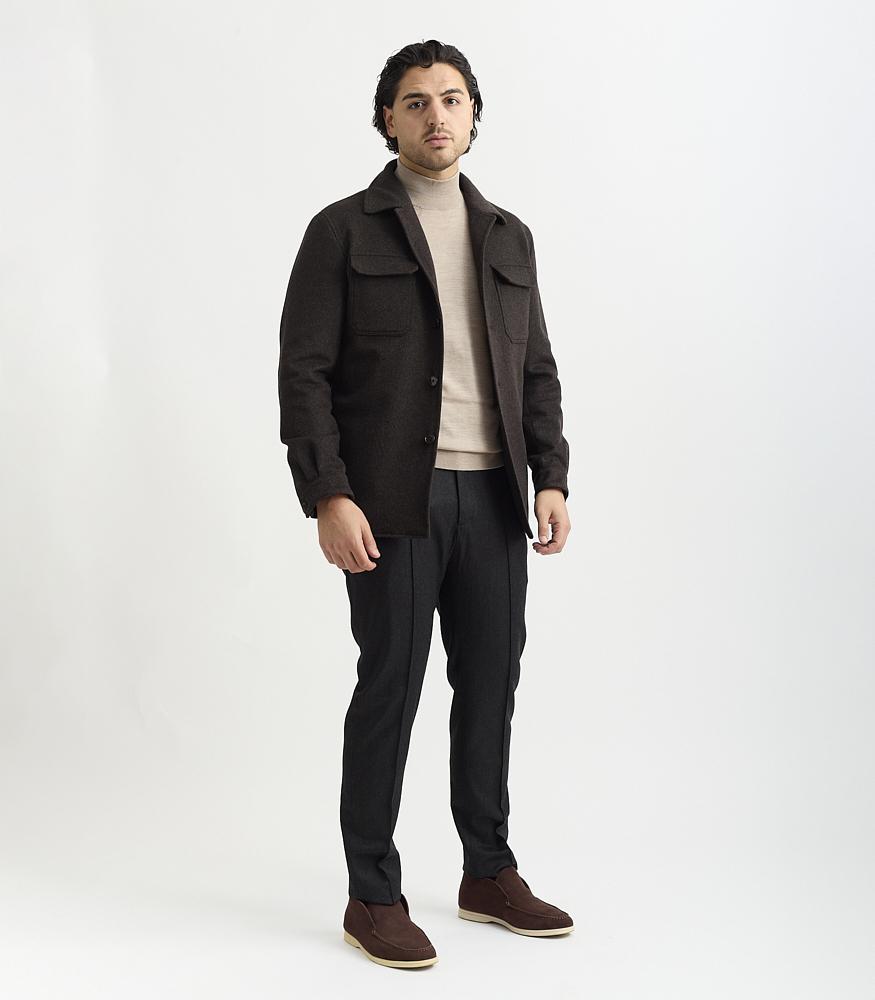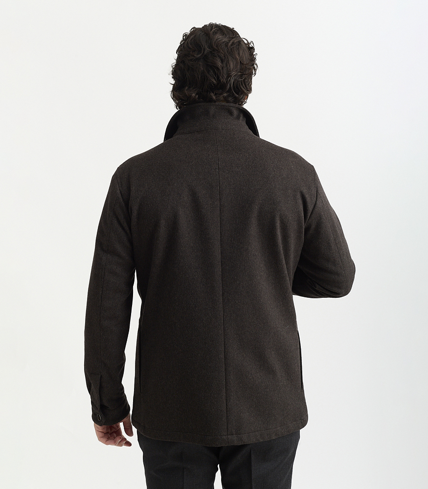 Die Zayn-L von Moorer ist eine luxuriöse Daunenjacke, die meisterhaft italienische Handwerkskunst mit funktionaler Isolation verbindet. Der Oberstoff besteht aus einem edlen Flanell aus 94 % Schurwolle und 6 % Kaschmir – eine Kombination, die Wärme, Weichheit und eine feine Textur bietet.