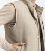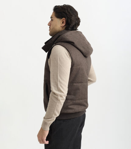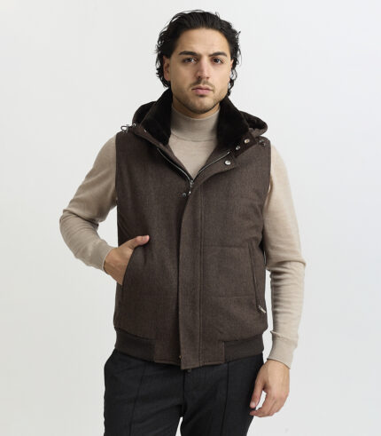 Diese exklusive Weste verbindet luxuriöse Materialien mit funktionaler Vielseitigkeit. Der natürliche Bieberfellkragen verleiht dem Design eine warme, voluminöse Ausstrahlung und sorgt zugleich für außergewöhnlichen Tragekomfort. Für zusätzliche Flexibilität ist die Kapuze – ebenfalls aus hochwertigem Bieberfell gefertigt – vollständig abnehmbar und lässt sich mühelos an unterschiedliche Wetterbedingungen oder Stilvorlieben anpassen. Fein akzentuierte Wildlederdetails betonen die handwerkliche Qualität der Weste und setzen stilvolle Kontraste, die dem Gesamtbild Tiefe und Charakter verleihen.